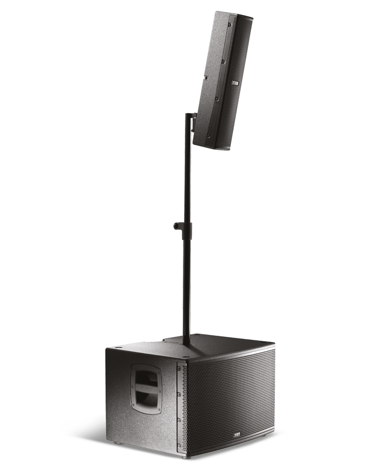 Il Vertus CS1000 è un array professionale che soddisferà il musicista alla ricerca di un PA compatto, facilmente trasportabile, modulare, pronto all’uso in pochi minuti ma di qualità “no-compromise”. Inoltre è capace di integrarsi in modo elegante e poco invasivo in qualunque ambiente ed installazione che richieda un suono di grande qualità ed una caratteristica direzionale controllata. Il cabinet del subwoofer, configurato in bass-reflex, dispone di un altoparlante da 12″ a escursione lunga, di un modulo di amplificazione a due canali in Classe-D, ed un vano per contenere l’asta di sospensione ed il satellite. Il satellite passivo in multistrato di betulla è connesso al sub tramite un cavo speakon in dotazione. Contiene 6 altoparlanti al neodimio da 3″ full-range. La dimensione contenuta in larghezza della colonna permette una dispersione di 110° nel piano orizzontale. Nel piano verticale invece l’array di 6 altoparlanti disposti meccanicamente nel pannello a formare un j-array consente una dispersione verticale di 30° (+10°/-20°). Il subwoofer è dotato di una maniglia in alluminio con inserto in gomma per un’impugnatura confortevole, tramite la quale è possibile trasportare l’intero sistema composto da subwoofer, satellite, pali di sostengo, snodo e cavetteria per una comodità impareggiabile. Il modulo di amplificazione in alluminio pressofuso, senza ventole, ha un canale da 600W LF e uno da 400W HF in classe-D ad alta efficienza e dotato di alimentazione switching. L’elaborazione del segnale audio è totalmente digitale tramite DSP e convertitori a bassissimo rumore. Dotato di 8 preset di equalizzazione, consente di avere il suono appropriato ad ogni condizione di utilizzo. Il volume del satellite può essere regolato, rispetto a quello del subwoofer, da -4.5 a +5 in 8 step. Un filtro HPF selezionabile permette di tagliare le frequenze troppo basse del subwoofer che potrebbero dare fastidio in certe condizioni (palchi risonanti, ambienti con acustica difficile, etc).