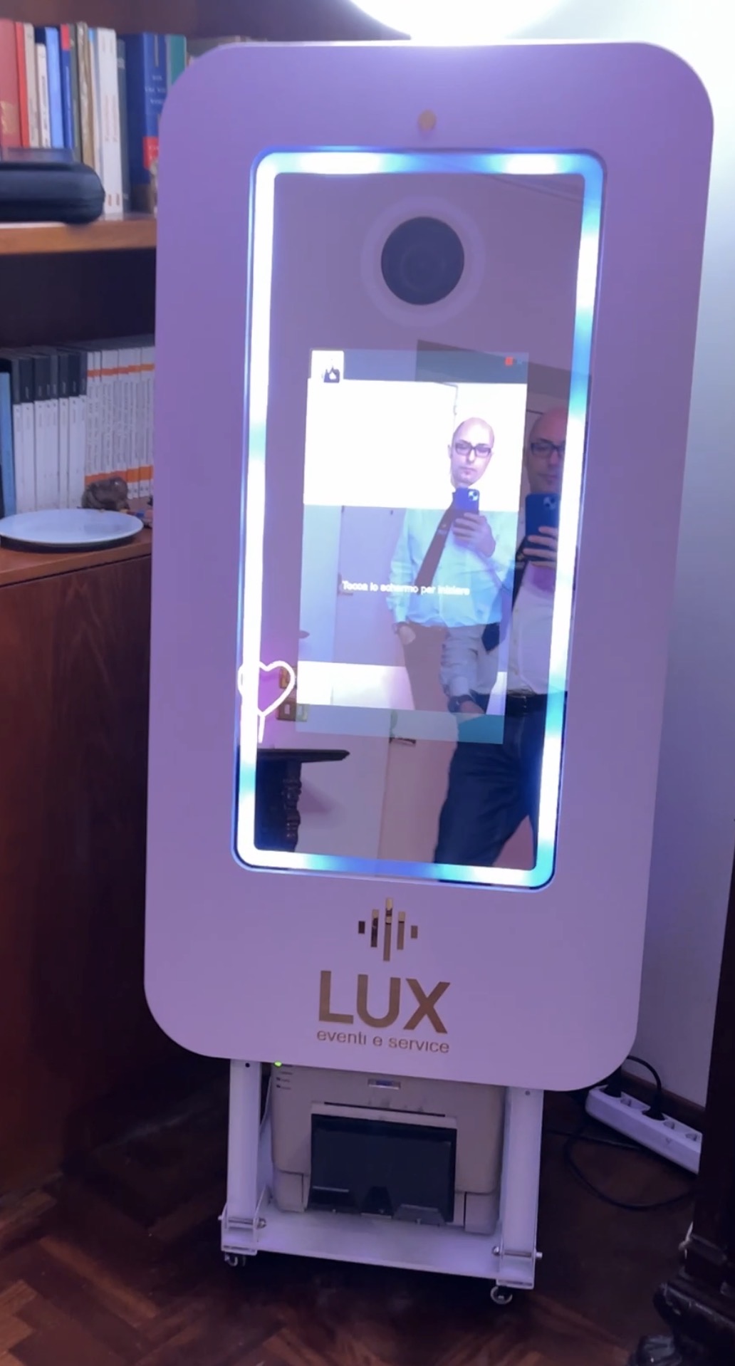 Compreso nel prezzo, struttura ,monitor touch screen, pc, luce a led rgbw con telecomando, luce esterna, gadget, cover personalizzata, case resistente, programma per gestire phototbooth.