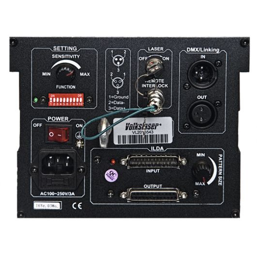 - Controllo: ILDA, DMX, Suono, Auto, Master/Slave